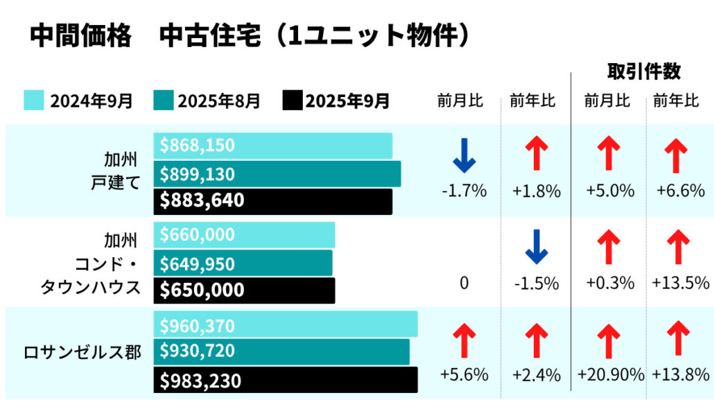 カリフォルニア州不動産協会が発表した2025年9月のデータです。